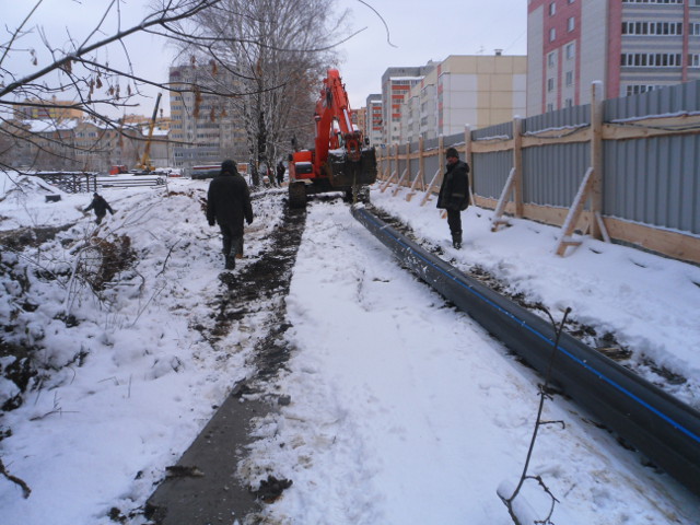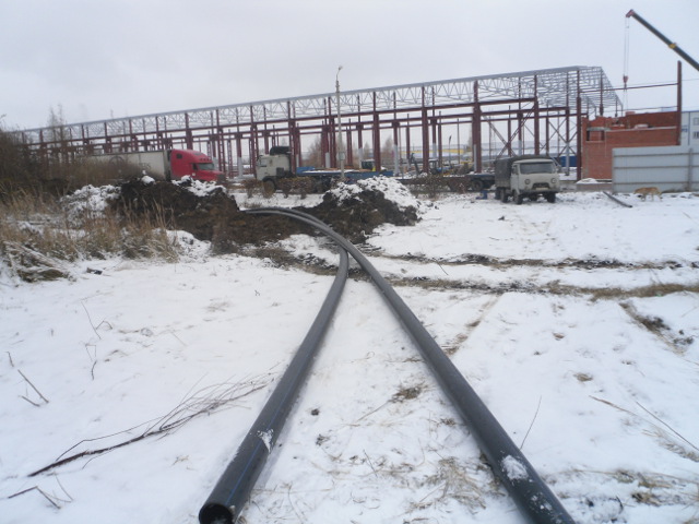 Строительство бестраншейного перехода водопровода для новостройки в Юго-Западном районе города Саранск производилось по заказу ООО ПКФ «Термодом». Метод строительства: горизонтальное направленное бурение (ГНБ). Адрес строительства: г. Саранск, ул. Щорса. Время бурения: последняя неделя ноября 2016 года. Длина ГНБ прокола 126 метров. Диаметр затянутой ПНД трубы 315мм.